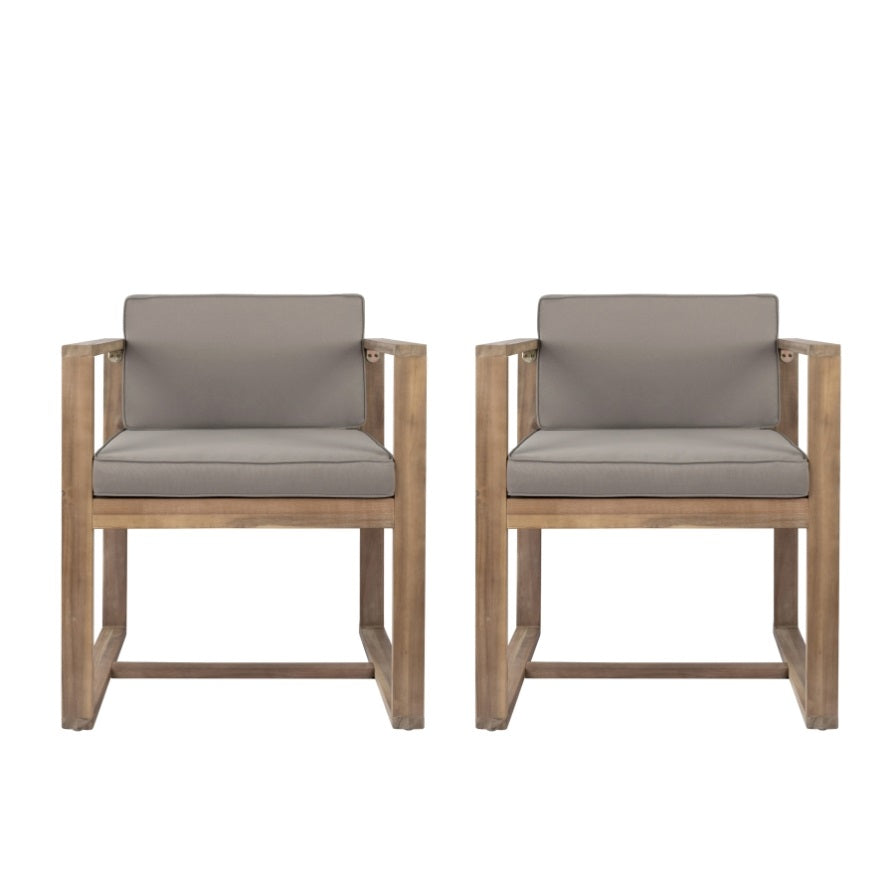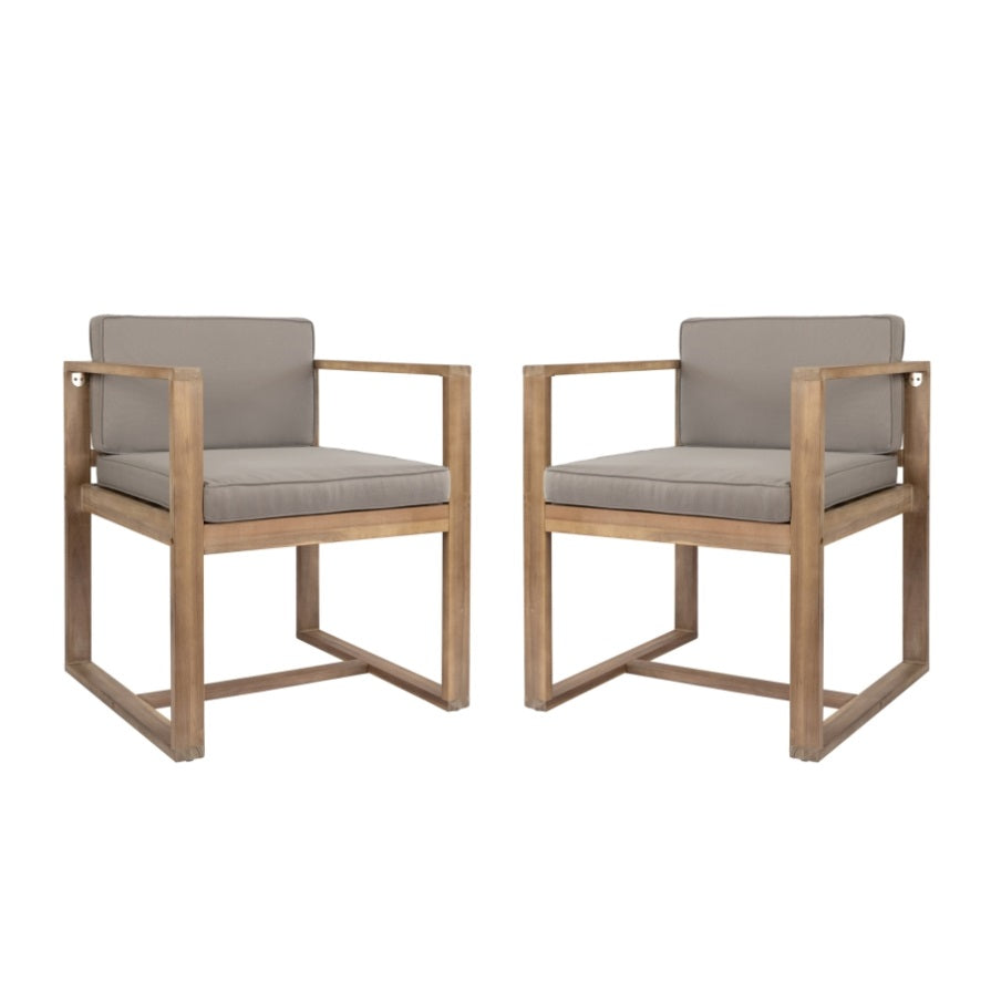 Set of 2: Product includes 2 Acacia wood chairs,Lightbrown frame& Lightgrey cush