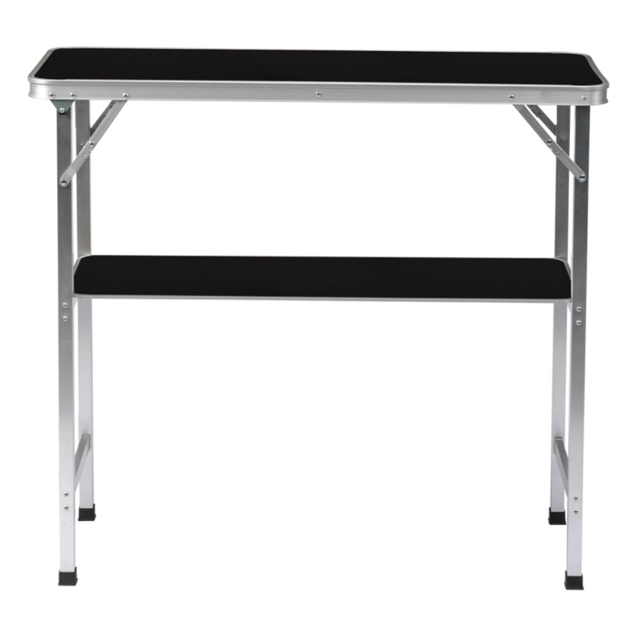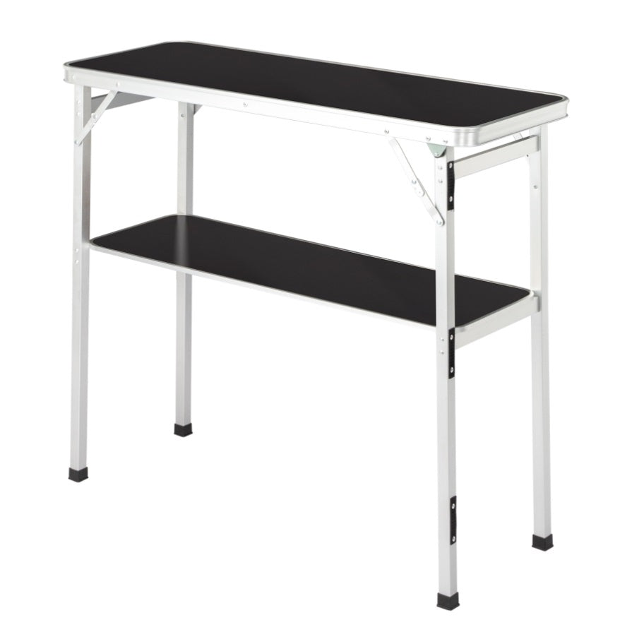 2. Reinforced Shelving for Added Strength: Both the tabletop and shelf feature aluminum alloy hems for enhanced durability, supporting up to 111 lbs and 44 lbs respectively—ideal for displays, supplies, or equipment.