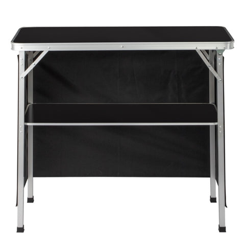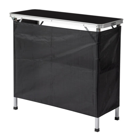 Designed for versatility, portability, and style, this Portable Folding Bar Table with Shelf is your go-to solution for events, trade shows, parties, and more. Built with a durable aluminum alloy frame and reinforced MDF surfaces, this table delivers both strength and stability. Its foldable structure and included carrying bag make transportation a breeze, and the professional black skirt adds a polished look suitable for any setting. Whether used as a presentation podium, service counter, or portable bar, this table is ready for any occasion.