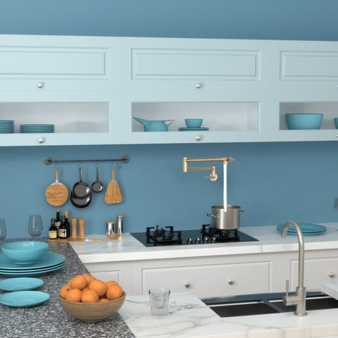 Stretchable wall mount pot filler leaves plenty of counter space for prep work