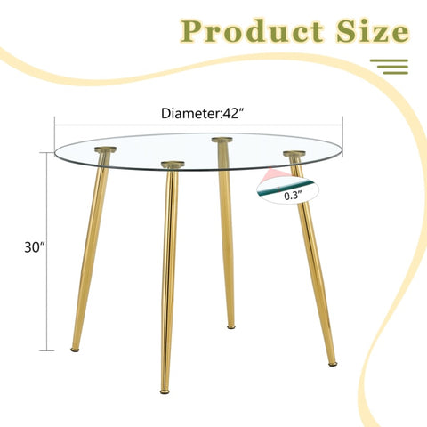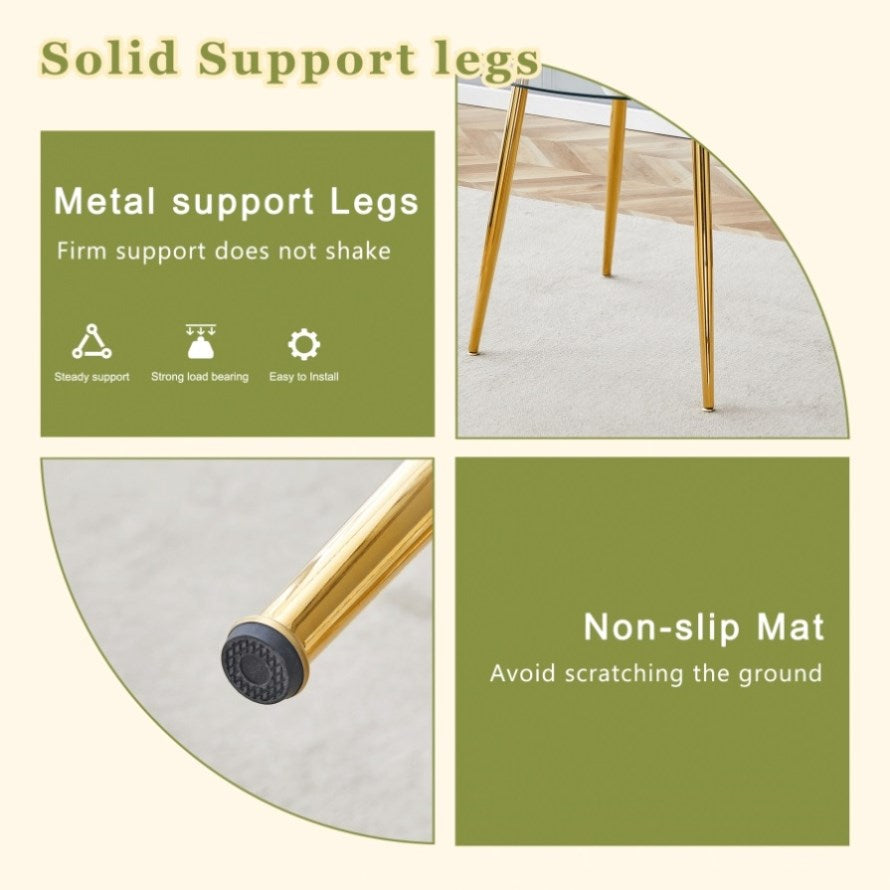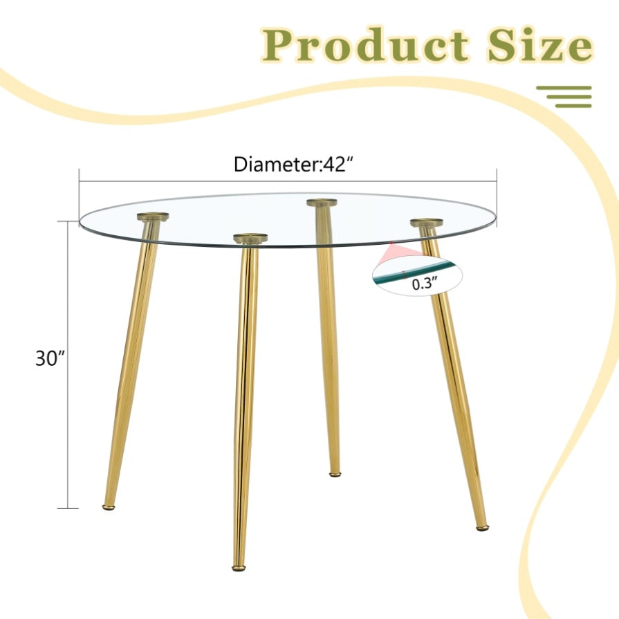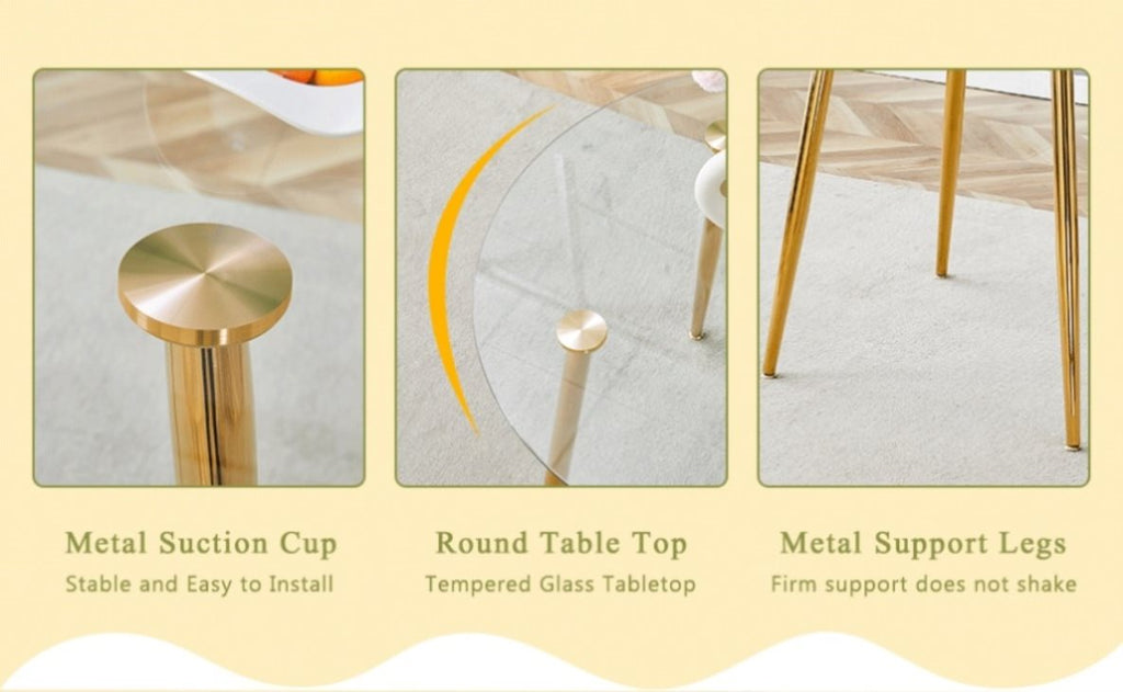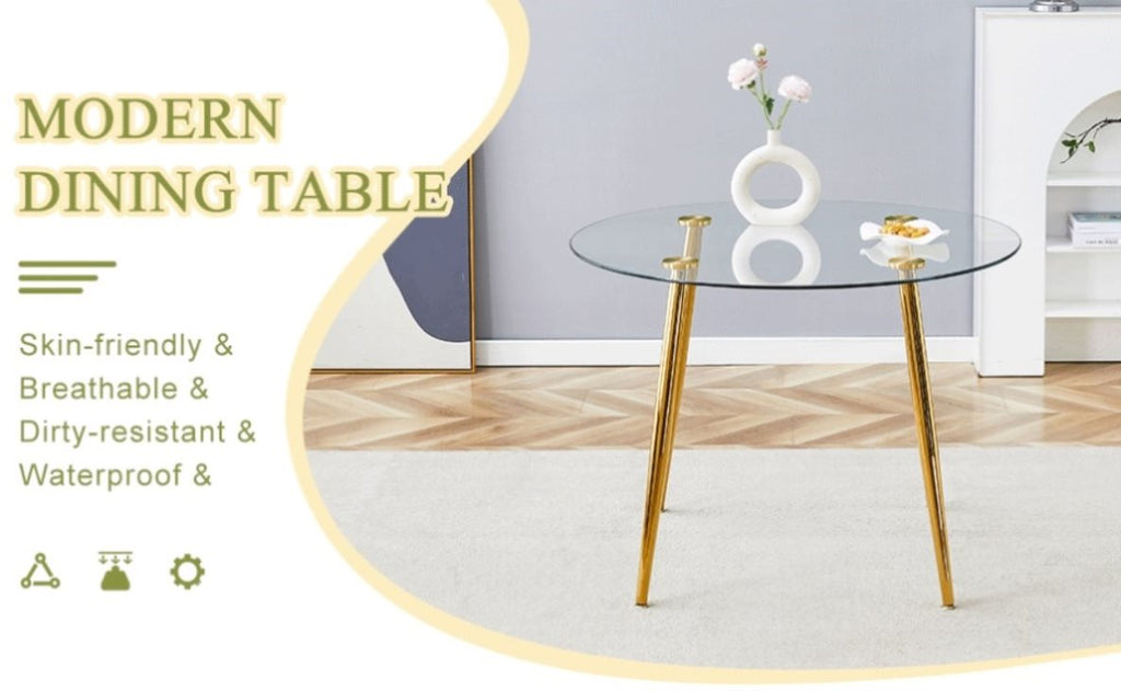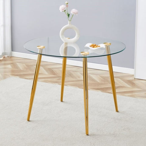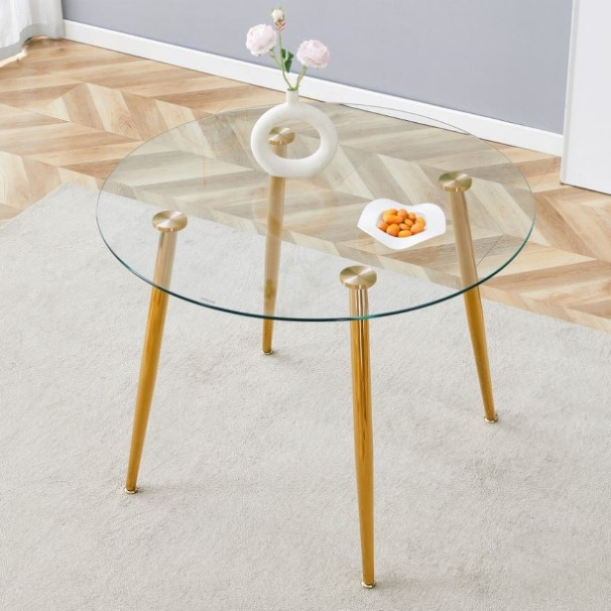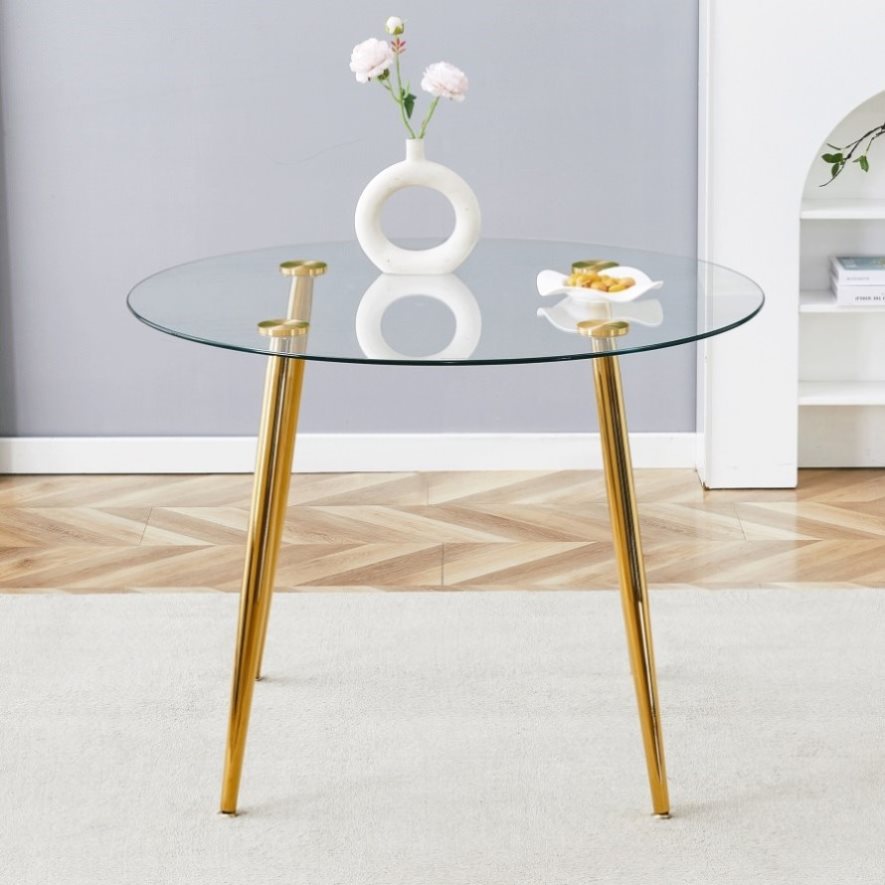 Make every meal a treat. Our glass-topped gold-legged round table, with its perfect combination of clear glass and golden metal legs, not only provides a spacious dining space, but also makes your home glow with a modern and elegant atmosphere.
