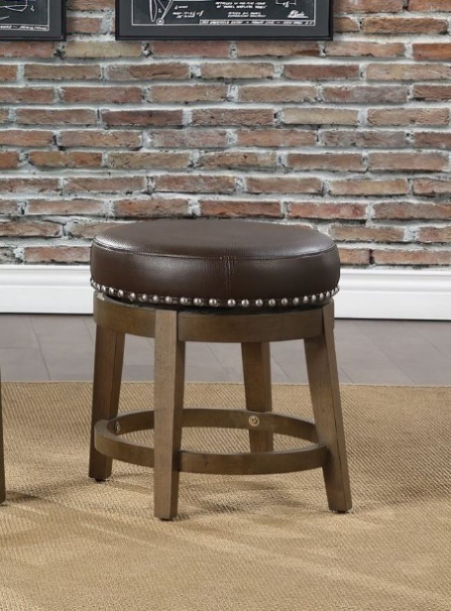 Transitional styling paired with versatility of selection makes the Westby Collection a perfect addition to your home’s casual dining spaces. The round, swivel seat, stool is presented at 18-inches. The brown finished wood legs complement the brown faux leather seat which features nailhead trim that further defines the stool’s round profile.