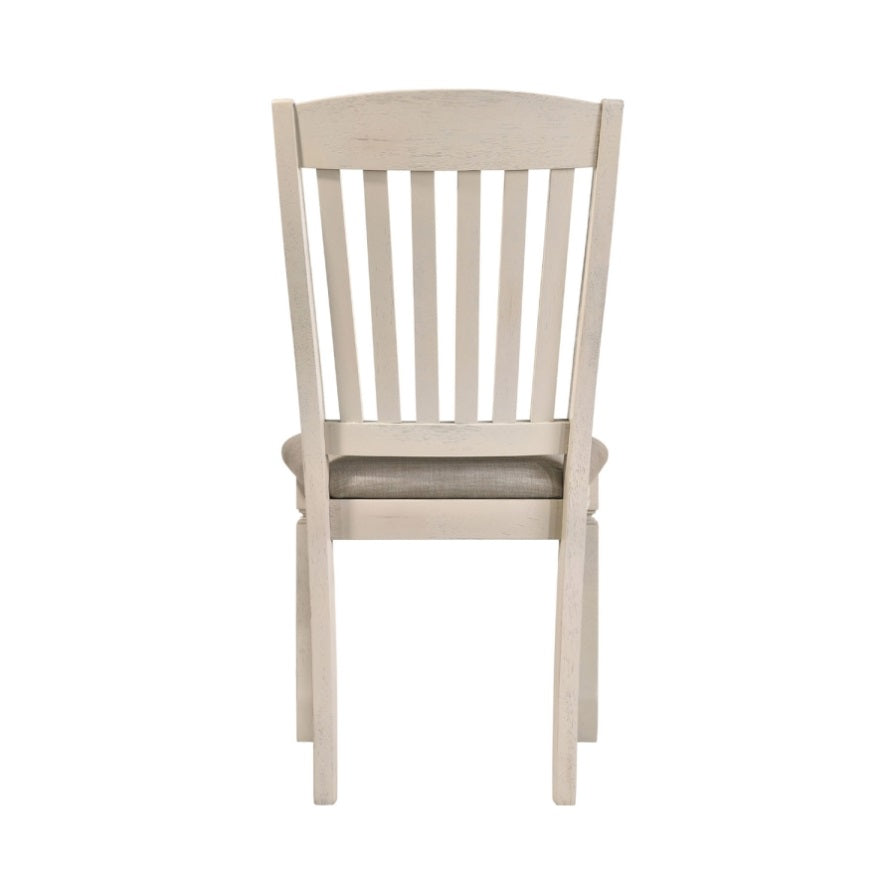 The weathered oak and cream finish adds charm to any space. The side chairs offer classic design aesthetics with its slatted backrest and padded seat. This chair is for anyone that wants to add some traditional charm to their home.