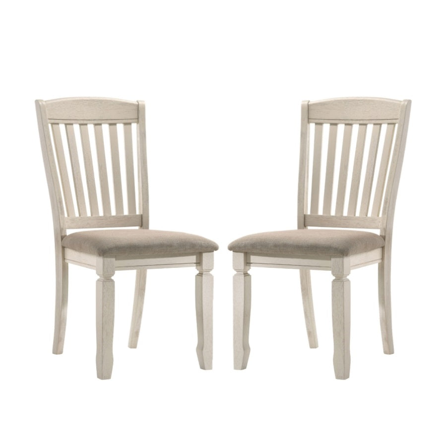 Set of 2 Dining Chairs with Slat Back, Tan Fabric and Cream Finish B016P314583