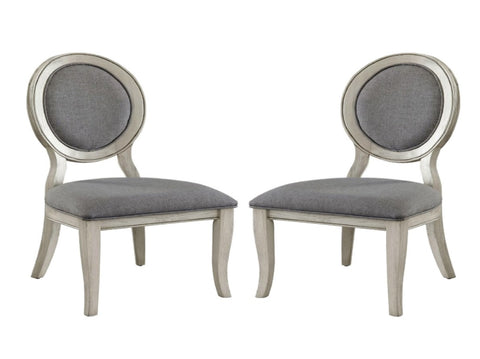 Set of 2 Padded Gray Fabric Dining Chairs in Antique White Finish B016P156827