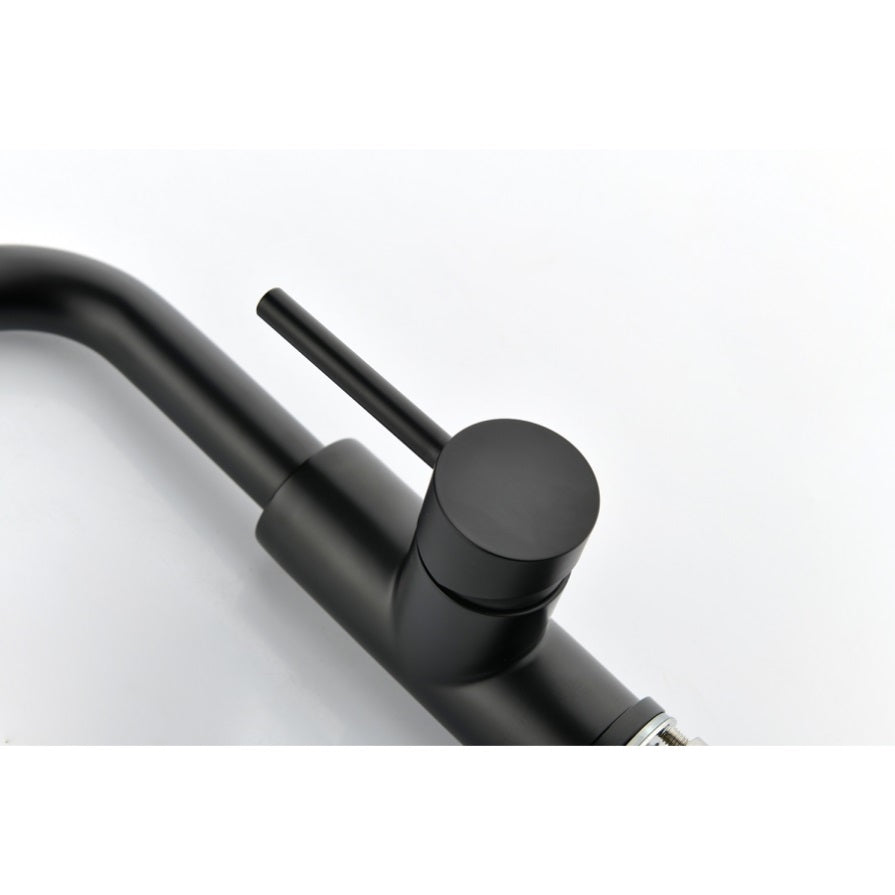 The kitchen faucet with pull-down sprayer has a simple and stylish design that easily matches most sinks. Two water outlet functions (stream, spray) to meet your various water use situations. The faucet can rotate 360 degrees to provide all-round cleaning, and the single-handle design makes it easy to control water temperature and flow rate. For daily cleaning, just wipe the faucet with a rag and it will look like new again.