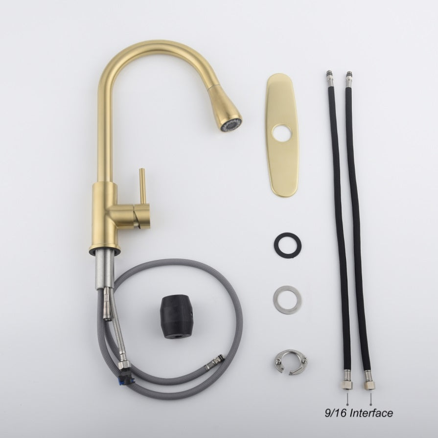Single Handle Stainless Steel Kitchen Sink Faucet with Pull Down Sprayer W2287P354628