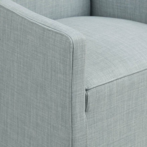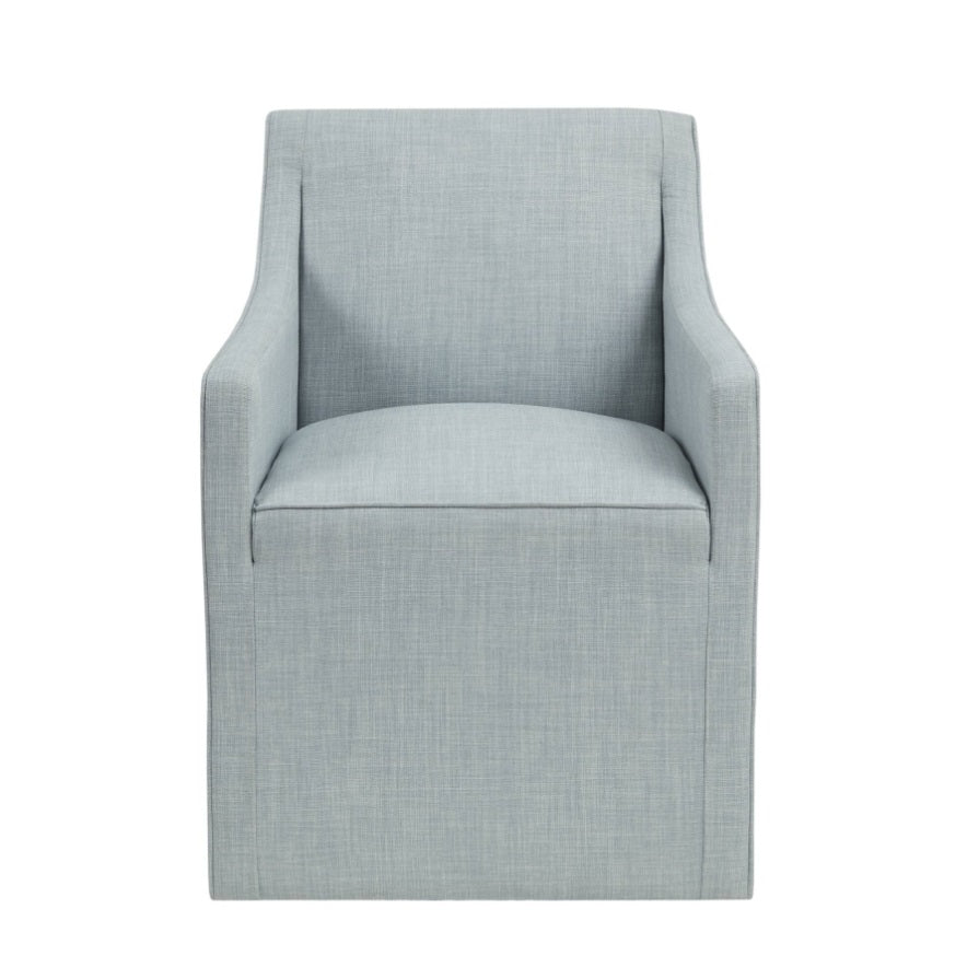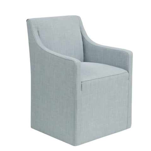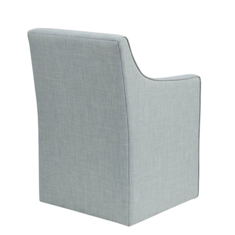 Elevate your dining space with the sleek style of Charlotte Upholstered Dining Arm Chair with Casters. This fully upholstered dining chair flaunts a tailored farmhouse design with its sloped arms, piping details, and tight seat. The unique design also emulates the look of a classic skirted without the hassle of fitting or adjusting the cover constantly. The woven light grey upholstery makes it easy to coordinate with traditional or farmhouse style dining tables. Hidden castor wheels make it easy to move the chair in and out, while the padded back, seat, and arms provide additional comfort. Ready to use right out of the box, this upholstered dining arm chair offers a chic update to your dining decor. No assembly required.