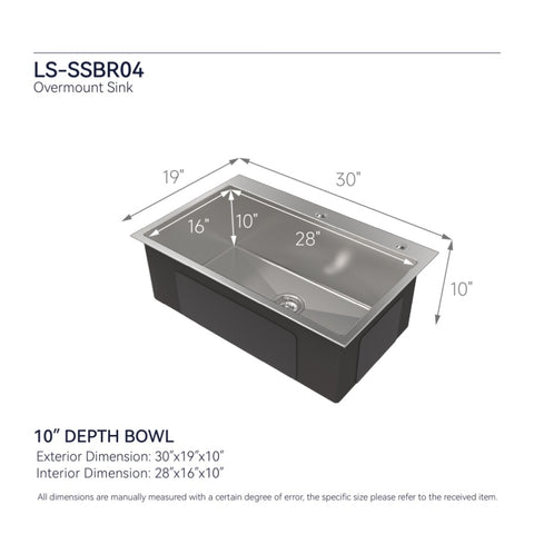 Stainless Steel Kitchen Sink, 30x19 Single Bowl, Overmount Handmade Sink in Brushed Nickel, with 59818375