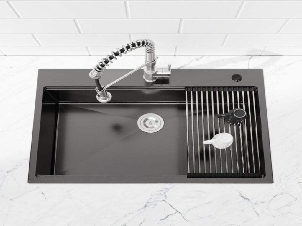 Stainless Steel Kitchen Sink, 30x22 Single Bowl, Overmount Handmade Sink in Black, with Cutting 53588355