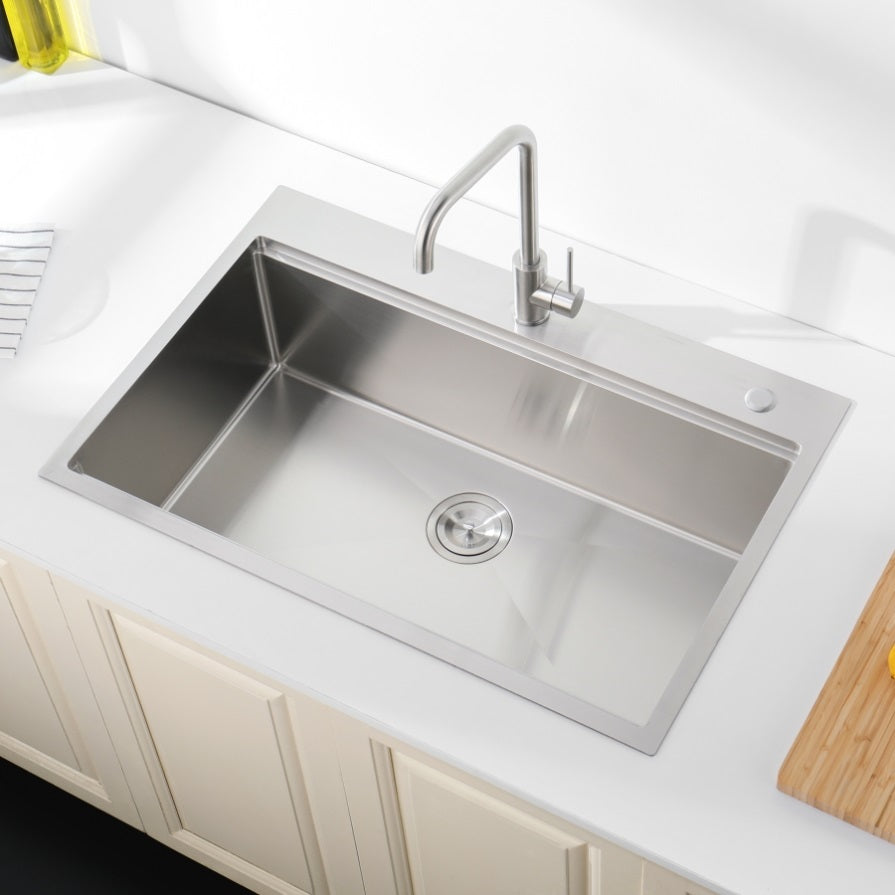 Stainless Steel Kitchen Sink, 30x22 Single Bowl, Overmount Handmade Sink in Brushed, with Cutting T3177P296188