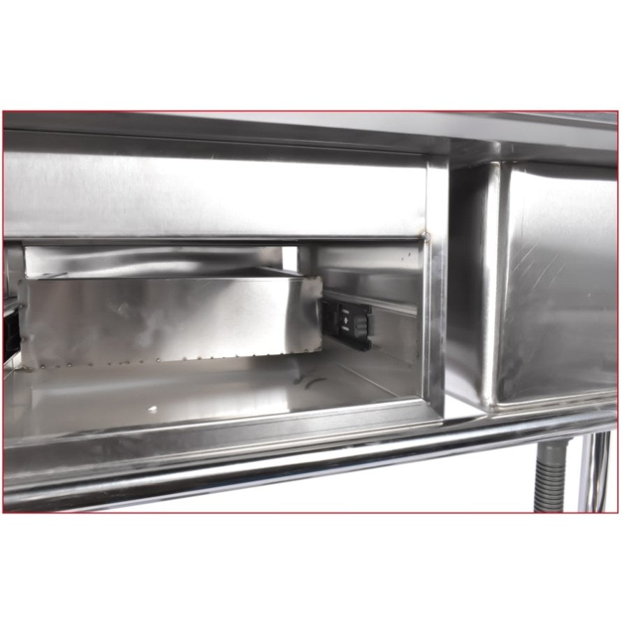 ▲EFFICIENT DRAINING SYSTEM: This commercial stainless steel sink set comes with a stainless steel drain mechanism and removable strainer to prevent food and debris from clogging the drain. Its efficient drain system drains quickly, reducing moisture in the sink and preventing water damage and pooling to ensure cleanliness and sanitation.