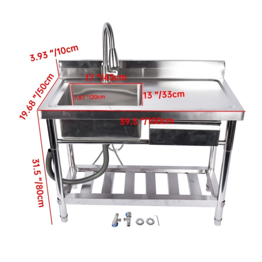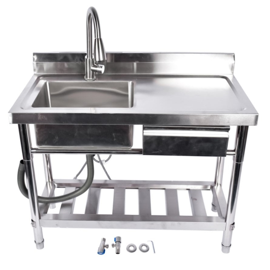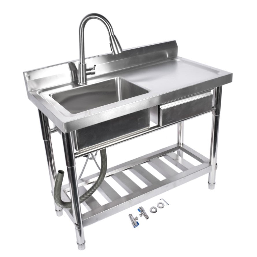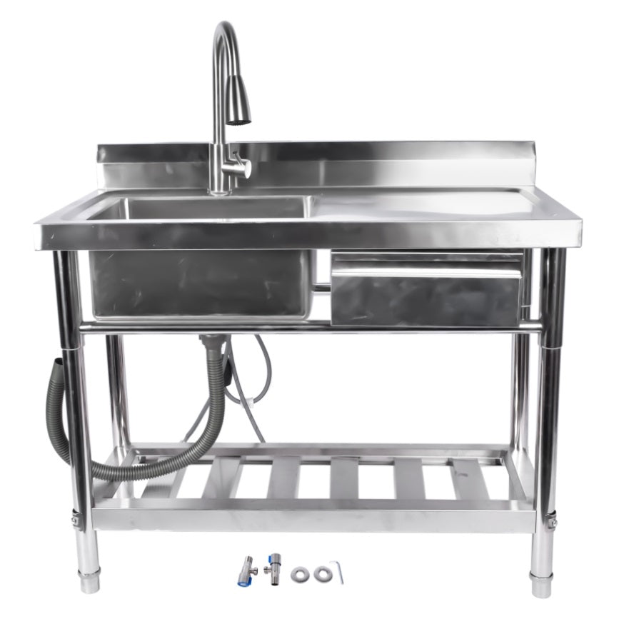 Stainless Steel Kitchen Sink Commercial Freestanding Utility Sink with Drawer and Pull-Out Faucet 48168067