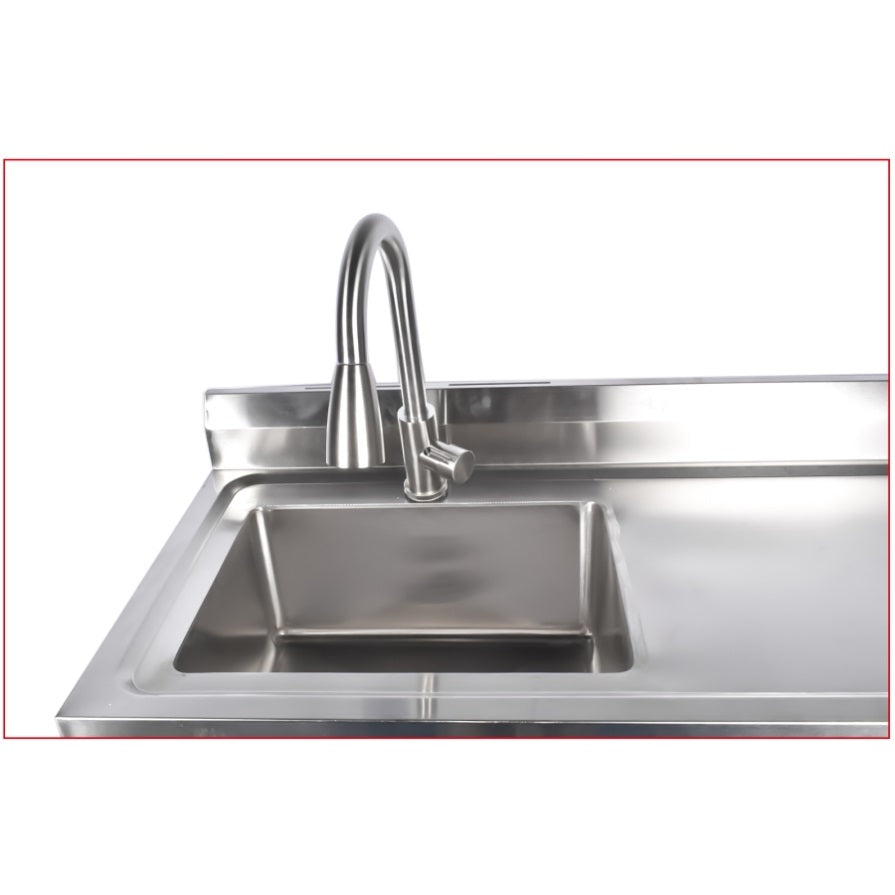 ▲FREESTANDING COMMERCIAL SINKS: stainless steel sinks with hot and cold water inlet pipes, gooseneck faucets with 360 degree swivel, pull-out faucets, feature washbasins, drawer storage cabinets, spacious drains and storage shelves. Suitable for any commercial premises.