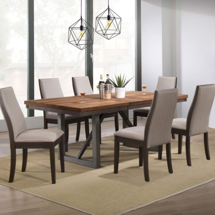 Taupe and Espresso Upholstered Dining Chair B062P153678