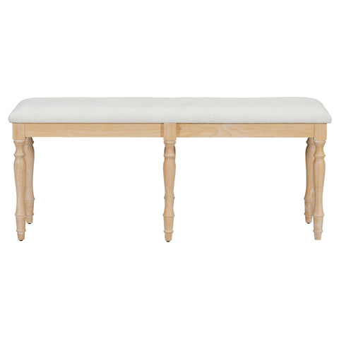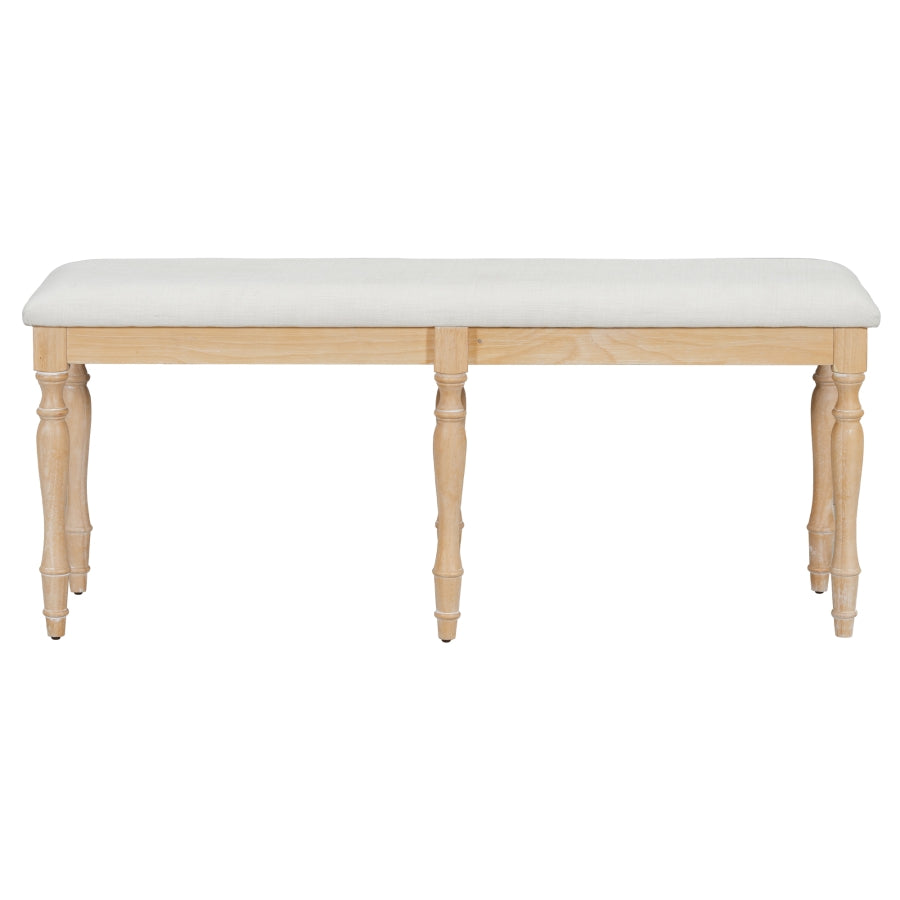 TOPMAX Vintage Traditional 50.4inch Upholstered Dining Bench with 6 Solid Wood Legs, Natural N717P170409A