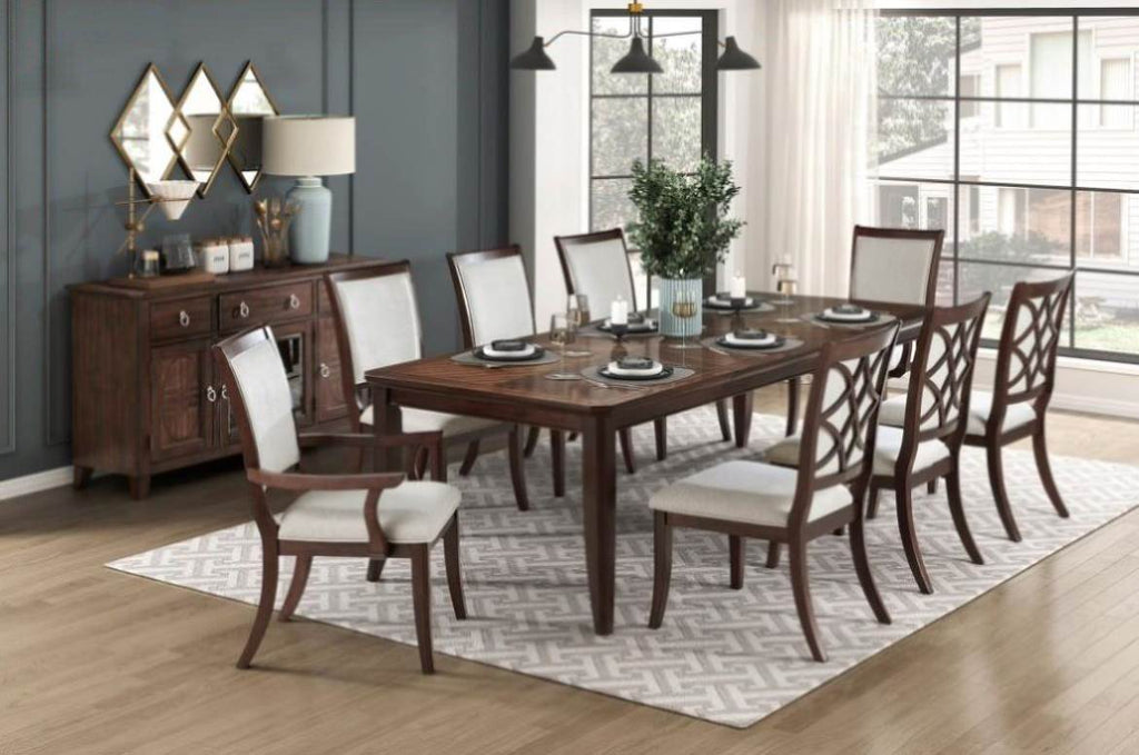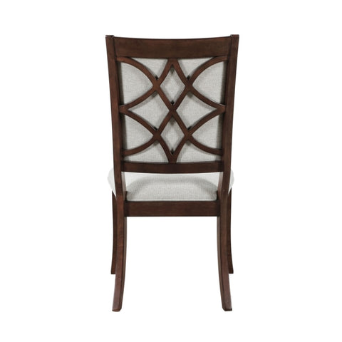 Enhance your dining or living space with the refined elegance of this side chair. This chair is expertly crafted with a sturdy wood frame, showcasing a rich cherry finish complemented by a sophisticated dark walnut inlay, adding a touch of classic charm. The plush, textured fabric upholstery provides exceptional comfort, making it perfect for everyday use or special occasions. Its design seamlessly blends traditional aesthetics with modern comfort, making it a versatile addition to any home decor. While assembly is required, the result is a durable and stylish side chair that supports up to 250lbs, enhancing both the aesthetic and functionality of your space.