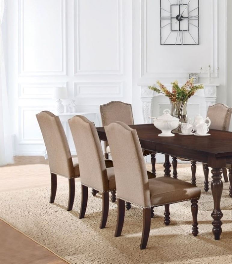 Bring some classy inspiration into your dining room with this warm toned side chairs beautifully wrapped with linen-like upholstery. With its stylish turned legs, this set makes it the perfect addition to any dining area.