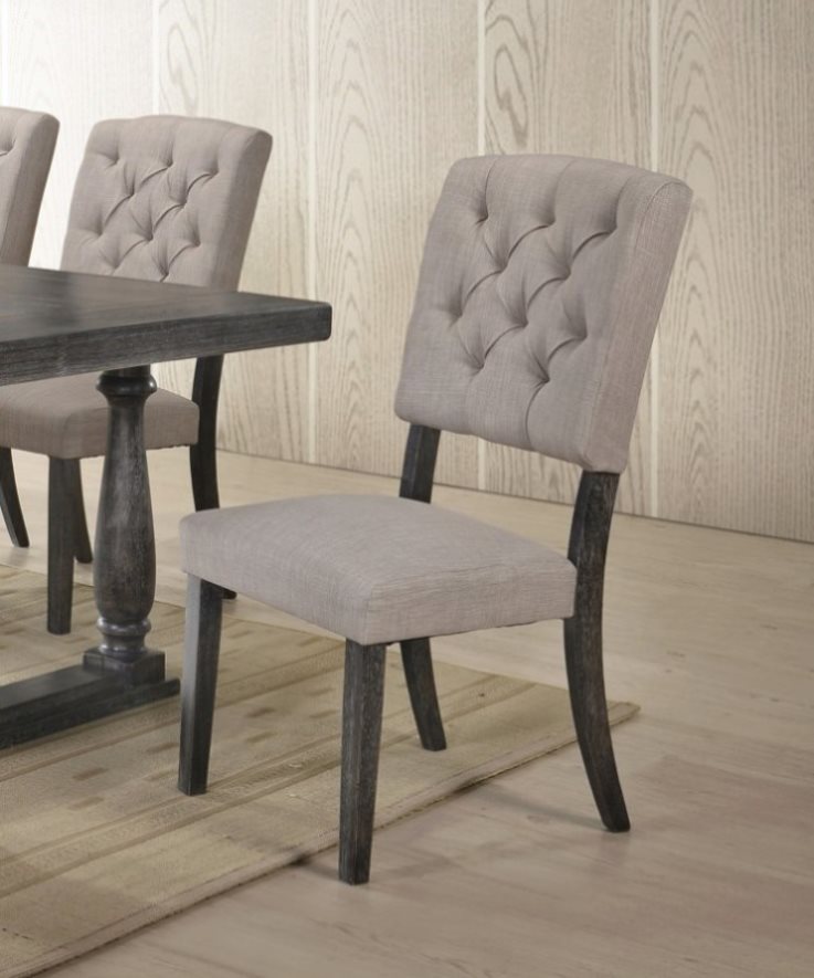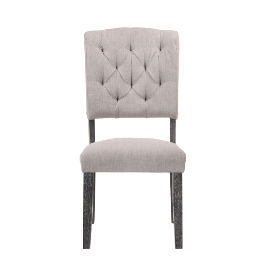 Transitional Dining Chairs Set of 2, Tufted Back Beige Fabric Upholstery Weathered Gray Oak Finish B2741P345901