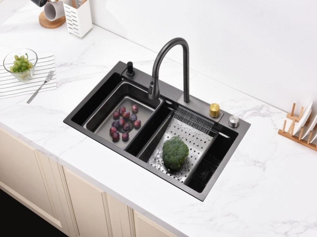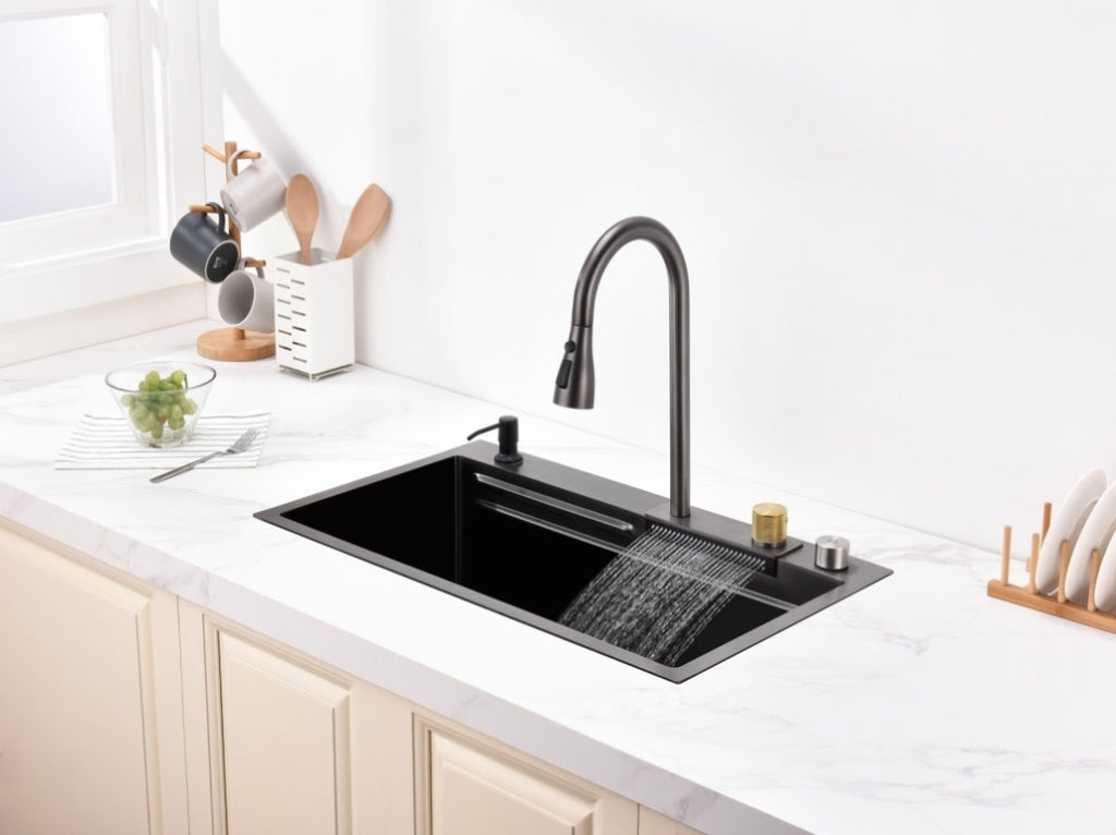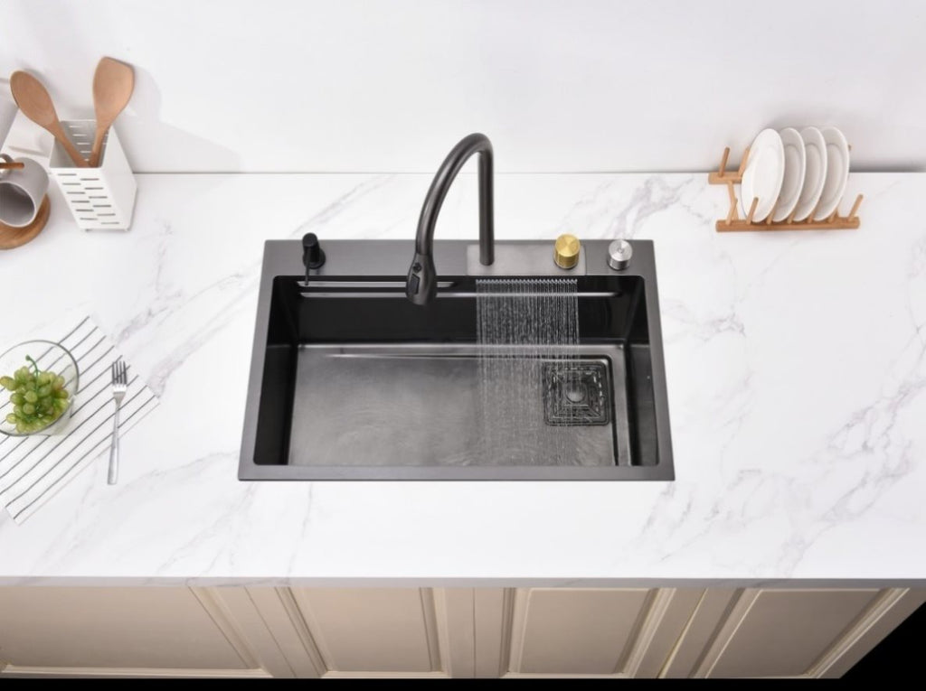 Waterfall Kitchen Sink, Stainless Steel Single Bowl in Black, Multifunctional Workstation with 55656405