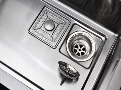 Efficient Flushing: Three water modes for the pull-out faucet. Focused streams for thorough cleaning of fruits and vegetables. You can easily rinse the food or big bowls with the waterfall faucet’s large cleaning area. Multi-functional Track: One tank for washing, cutting, and draining. Cutting board, basin-in-basin, triangular drainage basket and drainer are included, maximizing working space. Stainless Steel Sink: This black sink is made of high-quality stainless steel material, and there is a coating on the surface, which is more convenient to clean and more durable. Scratch Resistant: Easy to clean and efficient drainage. The surface is scratch resistant, making it easy to wipe and clean the sink. Sloped sink bottom helps drain water quickly and prevents water from pooling. Modern Design: This stainless steel sink has a variety of water outlet methods for your use. Built-in dual-track design makes it more convenient to clean and drain. After-sales Service: If there are any missing accessories, please contact us in time to send you replacement accessories. If you have any questions about the product, please contact us directly to avoid that we can't handle and answer your questions for you.Color Black Material stainless steel Size 29.52x17.72x9in Style base sink Included Components: Drainage Basket, Drain, Cutting Board, Nested Basin, Soap Dispenser, Drainage control knob Installation type base Finish type brushed Shape rectangle Drainage type grille 1 slot Net weight 9kg Product maintenance instructions: Wipe with a dry cloth Brush topcoat Pattern base sink Do you need a battery? No