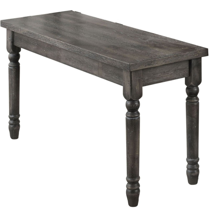 This wooden bench adds authenticity to farmhouse design, offering comfortable seating for family and guests without arms or a backrest. Its weathered grey finish radiates warmth, creating a cozy atmosphere, while turned legs contribute to its vintage farmhouse charm, evoking an elegant and classic silhouette.