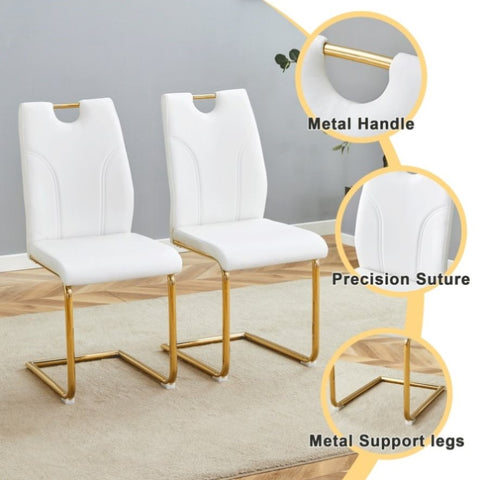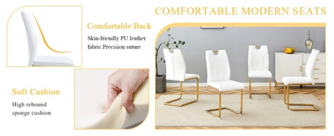 White PU Dining Chair Set.Uniquely designed white dinings. PU material, paired with gold metal W2920P233519