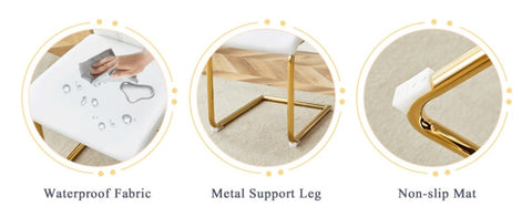 Golden metal chair legs: Gold frame metal chair legs, modern and fashionable, adding home beauty.Anti slip feet: The bottom of the chair legs is equipped with anti slip feet to protect the floor from scratches.