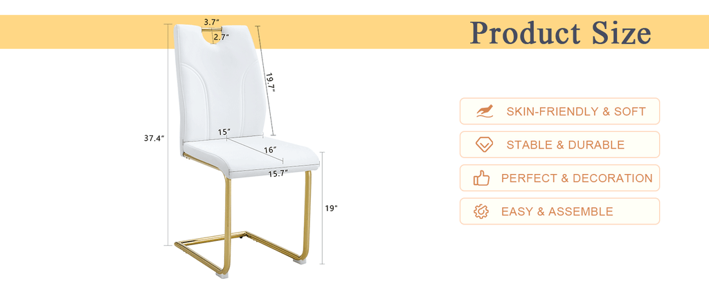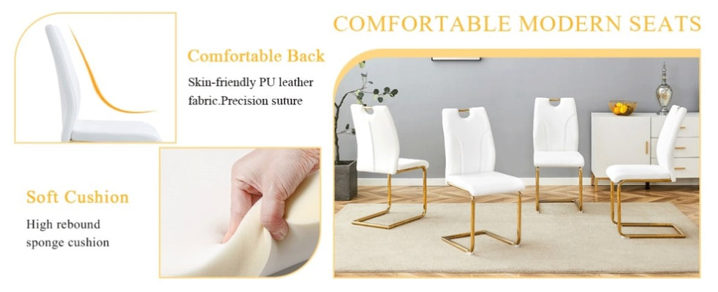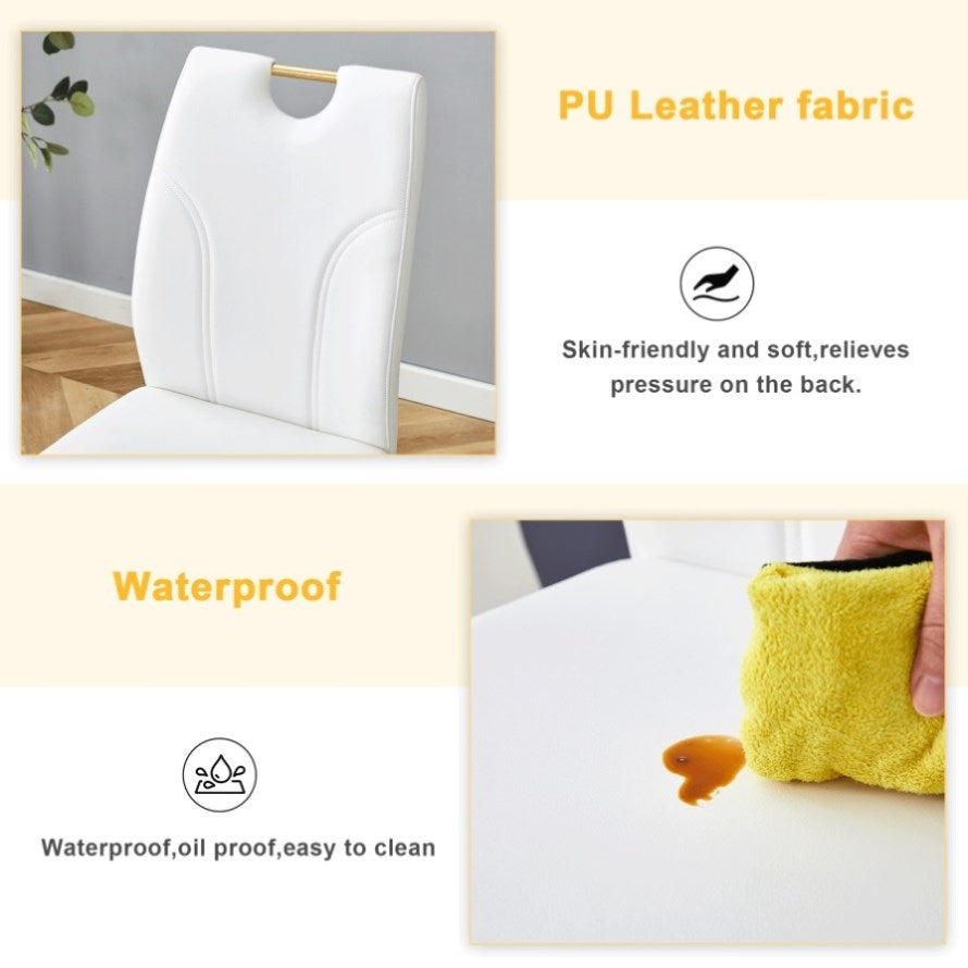 High-Quality PU Material: The dining chairs are made of high-quality PU material, which is soft to the touch, durable, and easy to clean.Sponge Filling: The backrest and seat are filled with high-density sponge for excellent rebound and comfort.