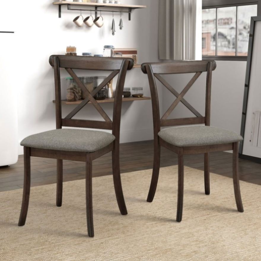 Wooden X Back Dining Chairs Set of 2, Modern Fabric Upholstered Kitchen Side 2PC Chairs, Cross Back W2582P188310