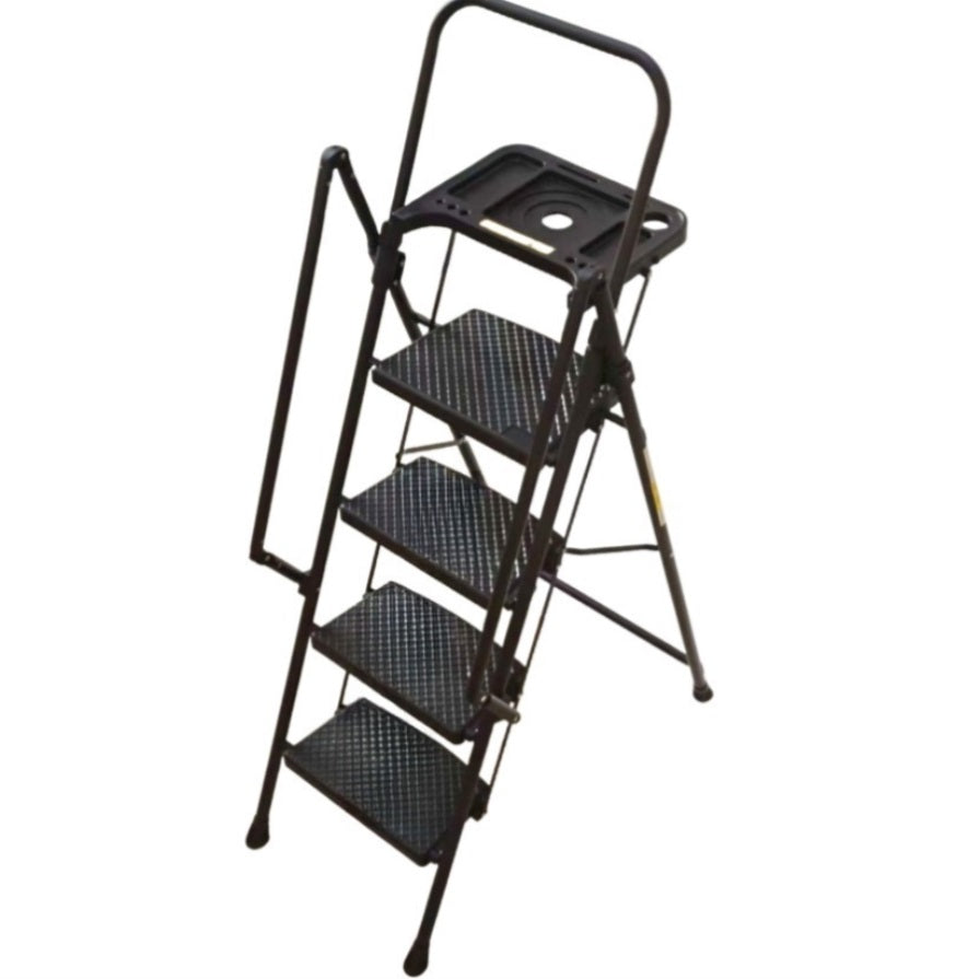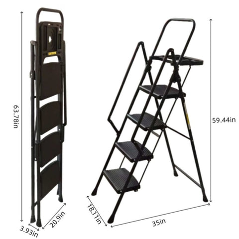 Flexible design: With a detachable tool tray at the top, you no longer need to climb up and down to retrieve your tools while working. You can place them in the tool tray. When you don't need them, they can be removed.PORTABLE AND SPACE-SAVING: This Folding Step Stools comes fully assembled. Lock and open system for easily open and fold. Easy to transport and carry, suitable for indoor and outdoor use.