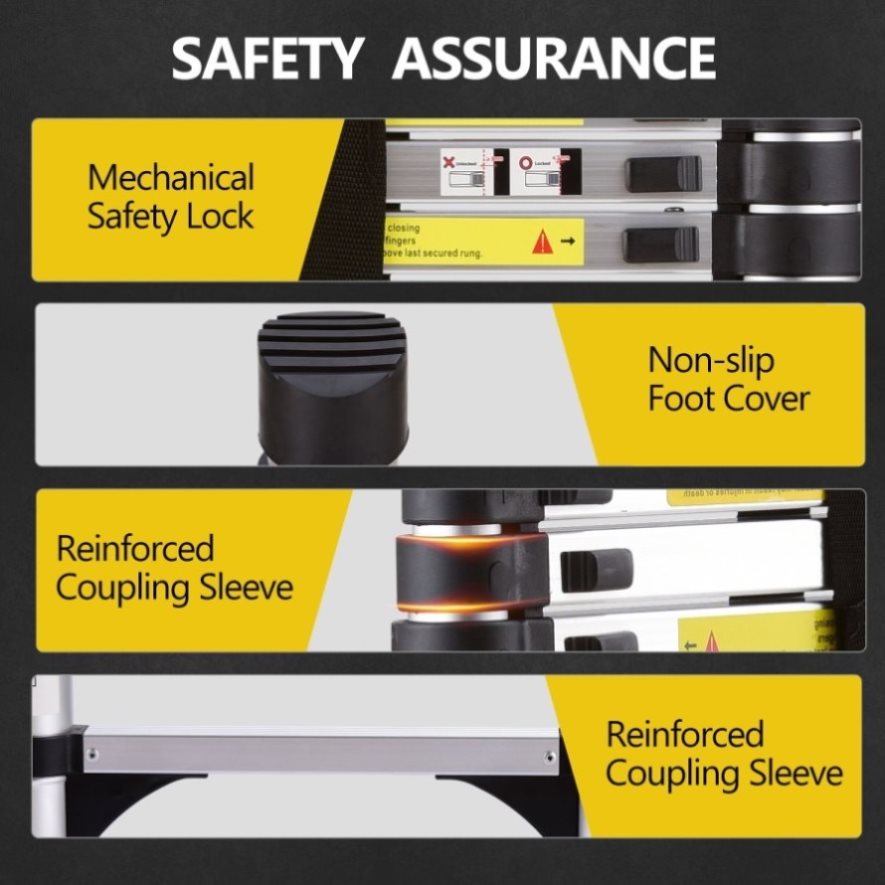 Safety and flexibility: Our 13.5 foot telescopic ladder puts safety on each step with a separate telescopic fixed lock to prevent fingers from clamping. The height can be adjusted to meet various requirements of the 9-foot ladder task. Safety is critical!