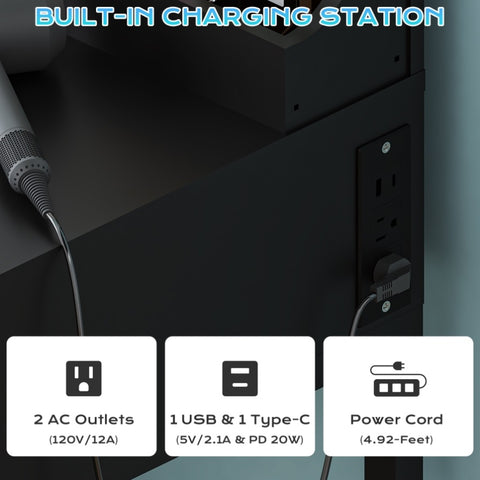A built-in power strip with multiple outlets and USB ports allows you to conveniently charge your devices, such as smartphones, hair tools, or LED mirrors, while keeping cables tidy and out of sight. The dressing table also includes thoughtful elements like a rear cable management system to prevent tangling and a stable structure that ensures safety during use. This combination of functionality and convenience makes it perfect for modern lifestyles.