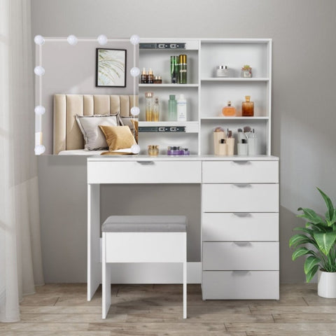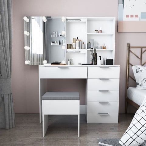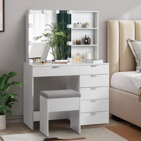 Particleboard Triamine Veneer 6 Pumps 2 Shelves Mirror Cabinet 3 Tone Light Bulbs Dressing Table Set 22107168
