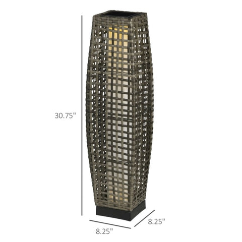 ●     Rattan Lamp Info: Overall Dimensions: 8.25" W x 8.25" D x 30.75" H. Solar Light Panel: 4.75" W x 4.75" D. Waterproof rating of IP44.