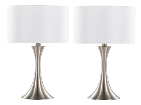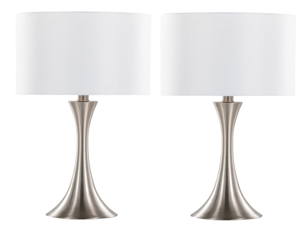 Add sleek modern style to your space with the Lenuxe Table Lamp Set from Grandview Gallery by LumiSource, which features a beautiful round base that elegantly curves up into a lovely hourglass body. Each lamp is topped by a metal finial and a drum shade, creating a lamp that is versatile yet stylish. Whether resting on your nightstands, set on a side table in the den, or tucked into your favorite reading nook, this lamp is a chic addition to any aesthetic.