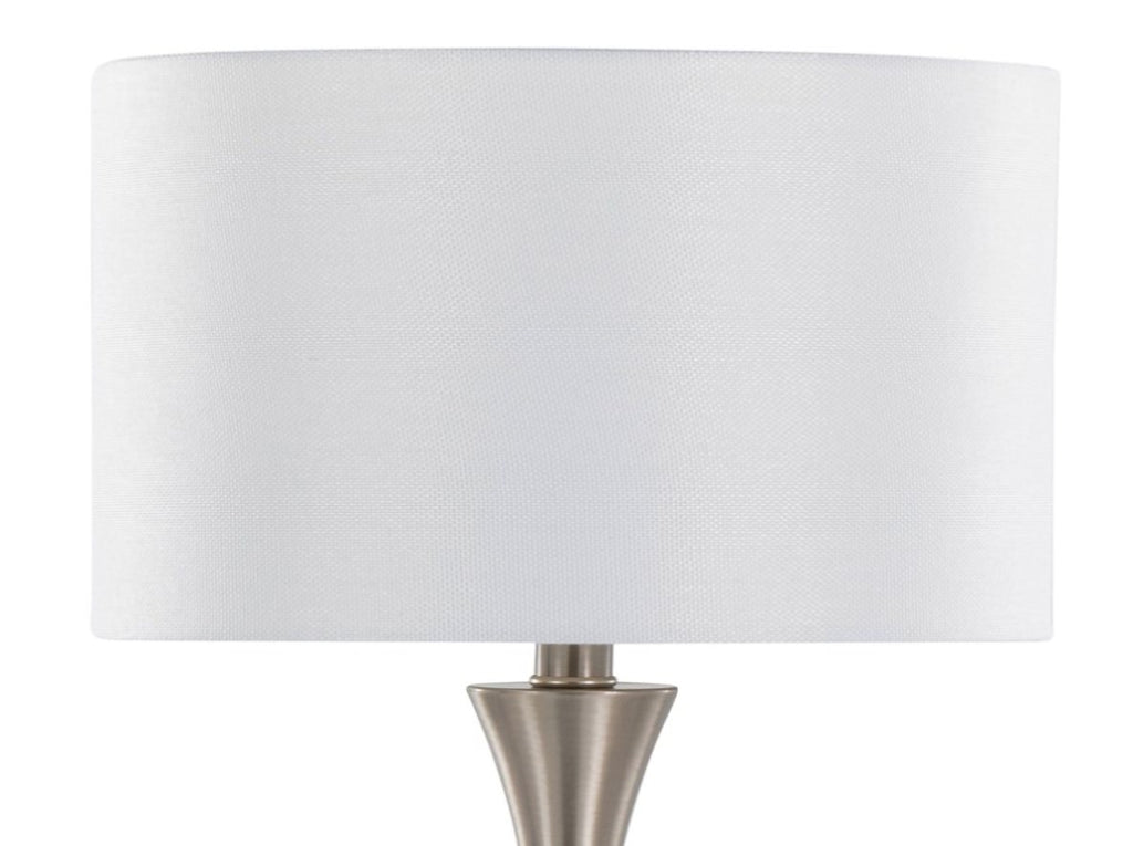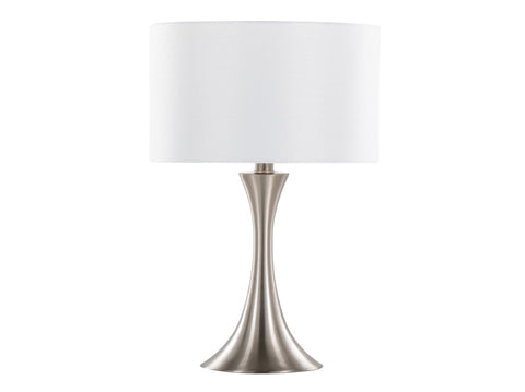 Lenuxe 24" Contemporary Metal Table Lamp in Brushed Nickel with White Semi-gloss Linen Shade from B202P224072