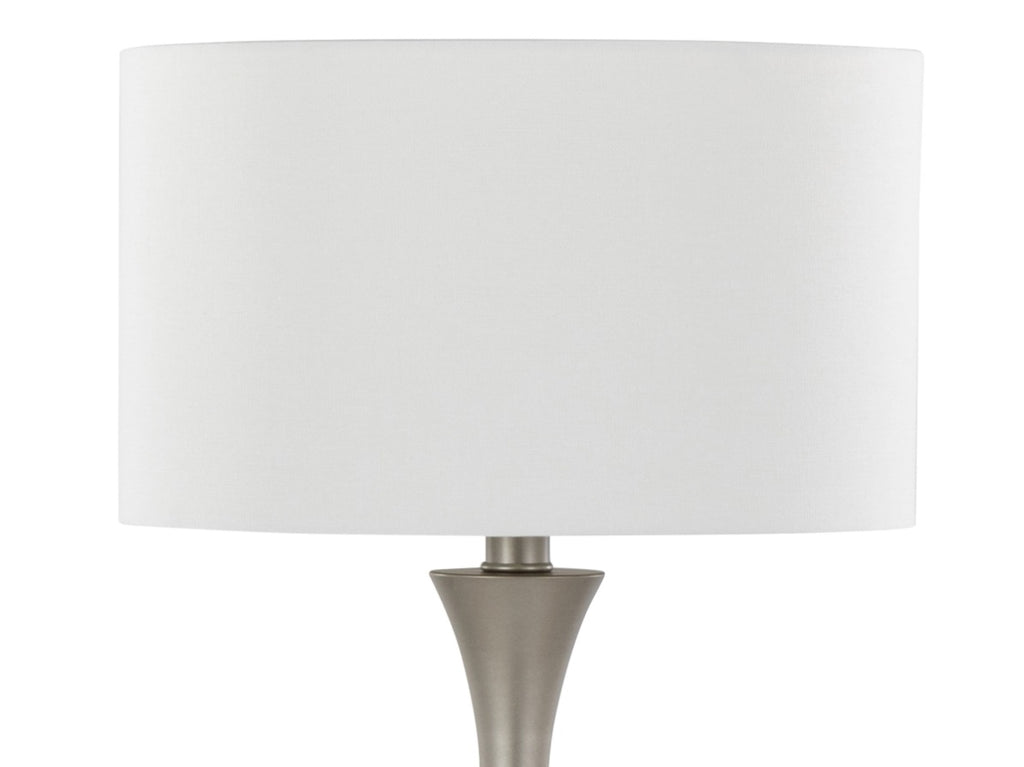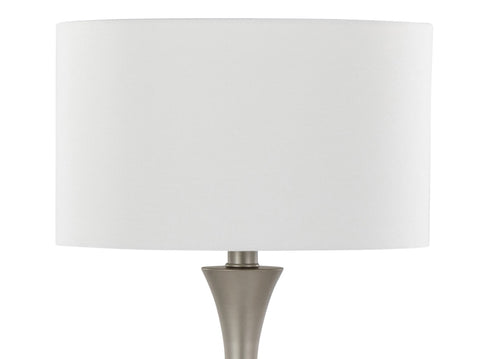 Lenuxe 24" Contemporary Metal Table Lamp in Frosted Silver Metal with Off-White Linen Shade from B202P224077