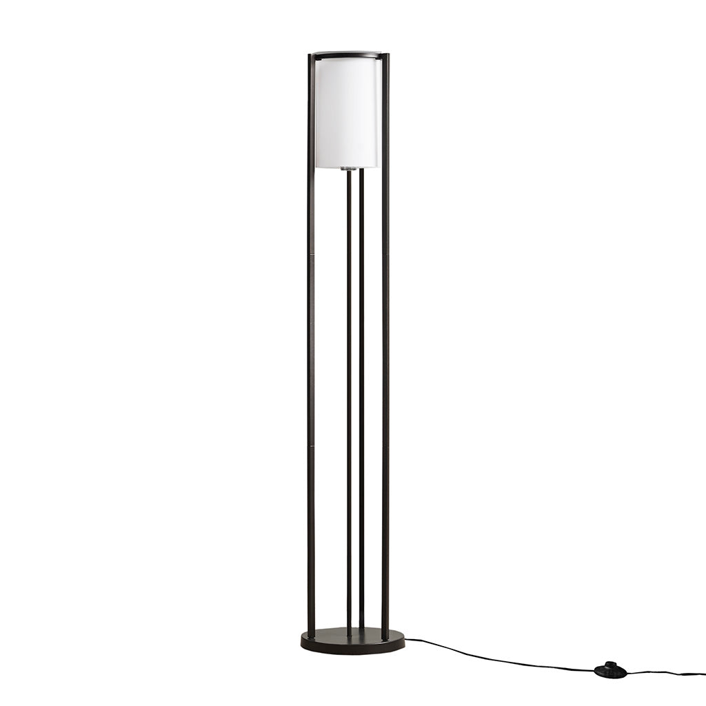 The Martha Stewart Charlton Metal Floor Lamp with Glass Cylinder Shade provides an easy way to elevate and illuminate your room. Featuring a sleek, streamlined silhouette in a matte black finish, this floor lamp's minimalist cylinder shape makes it ideal for tight spaces. The coordinating cylinder-shaped, frosted glass shade softly filters the light, for a warm and inviting glow. Place this 63" floor lamp beside a sofa, seat, or end table to give your home the quintessential radiance it deserves. Simple assembly is required. Use one Type A bulb (not included).