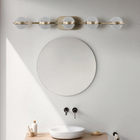 Modern Minimalist Bathroom Vanity Light, LED 5 Bulb Frosted Glass Shades, Wall Mounted Decorative W1340P143675