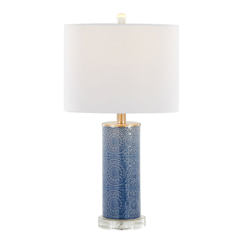 Spyro 23" Contemporary Table Lamp in Bijou Blue Ceramic with White Linen Shade Clear K9 Crystal B202P224021