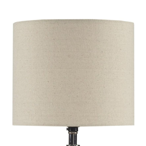 70% Ceramic, 25% Fabric, 5% Iron Base: Ceramic Shade Fabric: 50% linen, 50% polyester