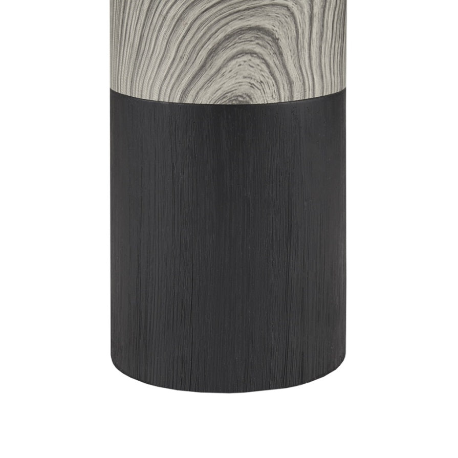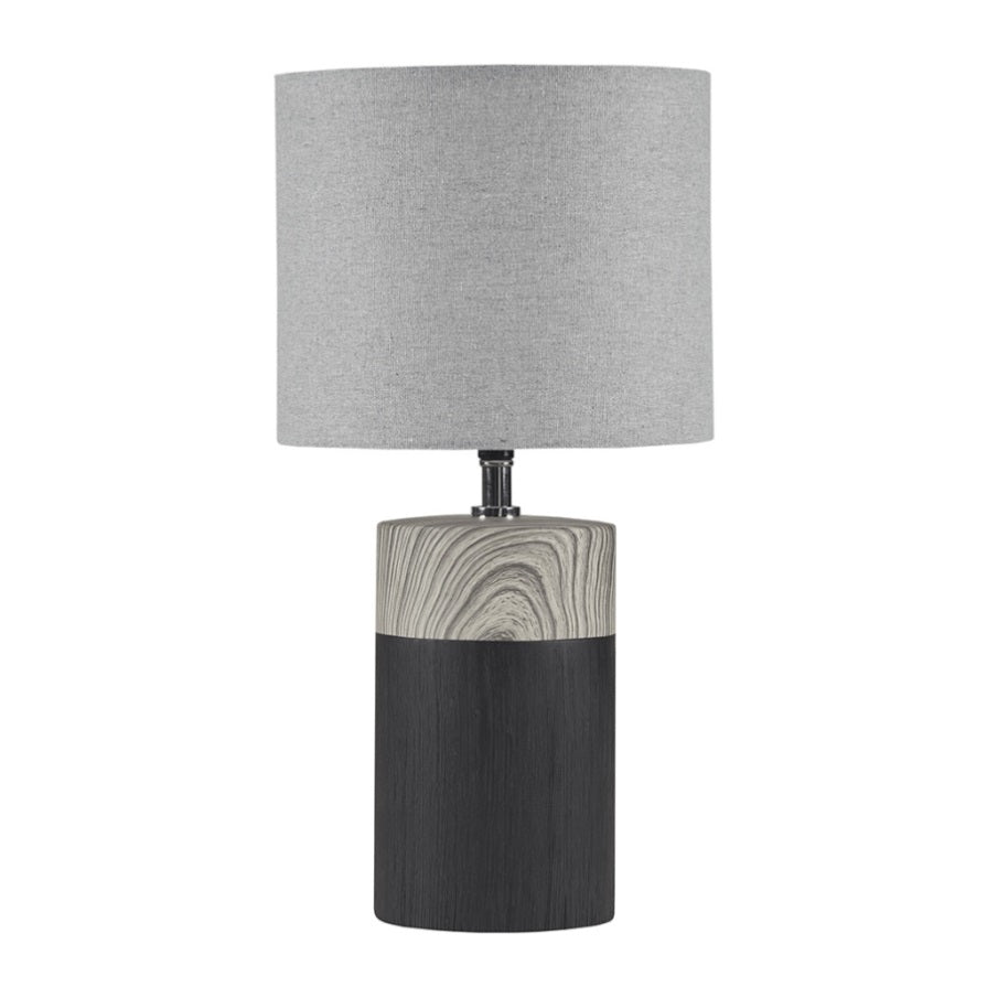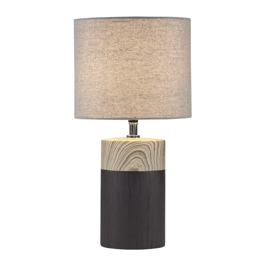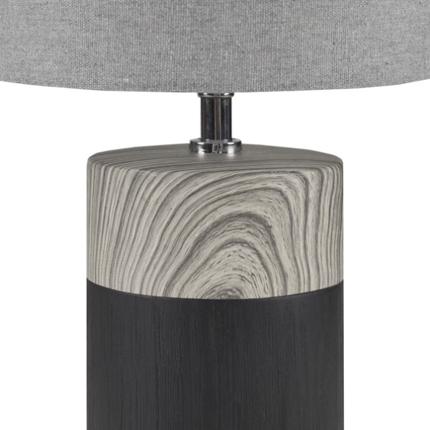 Elevate your decor and illuminate your home with the contemporary style of the 510 Design Nicolo Textured Ceramic Table Lamp. This round table lamp features a two-tone ceramic base in white with a brown wood grain pattern to create a stunning modern look. The drum lamp shade softly filters the light to provide a warm ambiance in your space. Flaunting a simple, yet gorgeous design, this modern table lamp adds a sophisticated charm to your home decor. Handle with care. Spot clean only.