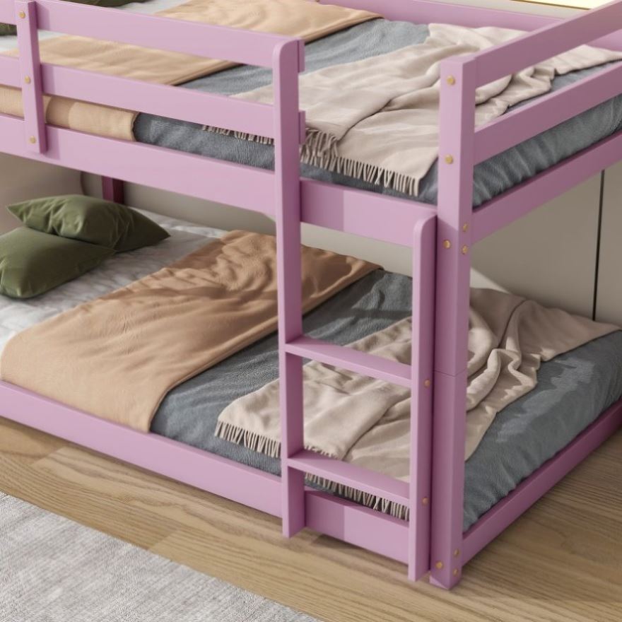 #1 [Twin over twin bed Design]The low height feature of this twin over twin loft bed not only ensures better stability but also increases versatile utilization. The unique design offers diverse sleeping preference as well as optimizing storage space. The ladder is crafted with a wider width to provide more spacious steps and solid support, making it easier for you to climb up and down the ladder.