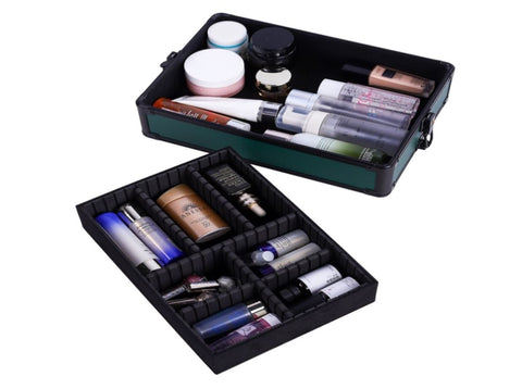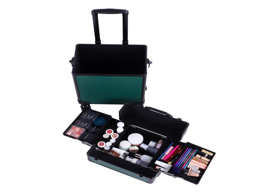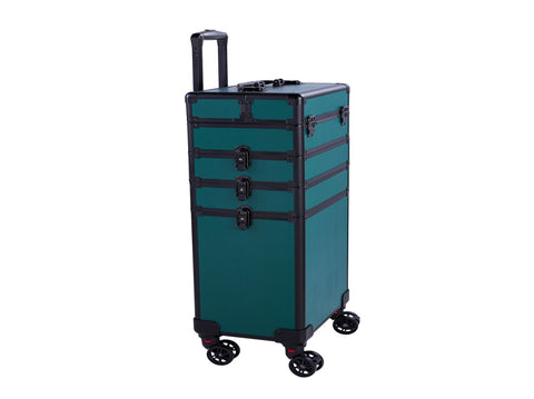 4-in-1 Draw-bar Style Interchangeable Aluminum Rolling Makeup Case-Dark Green 58641753