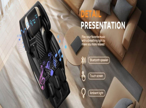 [Humanized Design] The zero gravity massage chair is equipped with rollers at the bottom, allowing you to easily move it around the room. It features Bluetooth audio connectivity, so you can enjoy music while receiving your massage. Both sides of the chair are enhanced with soothing blue ambient lights, creating a calm and relaxing atmosphere. The chair is designed to accommodate users up to 6.1 feet tall and 180 pounds.