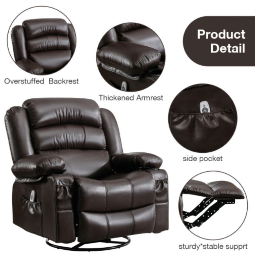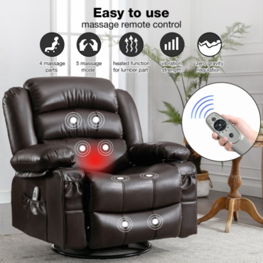 Massage Swivel Rocker Recliner Chair with Vibration Massage and Heat Ergonomic Lounge Chair for W1807P172340