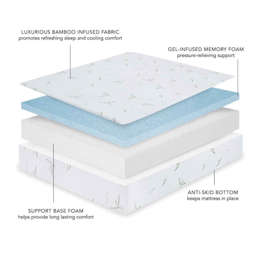 Experience refreshing comfort when resting on the supportive memory foam and hypoallergenic bamboo infused cover found in the 10-Inch Memory Foam Mattress. '
