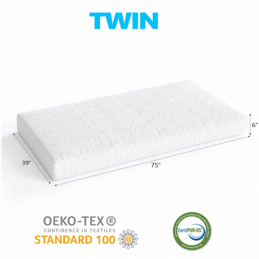Transform your small sleep space with our 6-inch Twin size memory foam mattress, a perfect combination of compact design and cozy comfort! Featuring a clean all-white finish, it adds a fresh and minimalist touch to any room while delivering gentle support. Crafted with high-quality memory foam, this mattress conforms to your body contours, relieving pressure points and ensuring a restful night's sleep. The breathable foam material promotes air circulation to keep you cool, and the compact 6-inch thickness makes it ideal for bunk beds, daybeds, and dorm frames. Measuring 39"x75", it’s a versatile choice for kids, teens, college students, or guest sleepers.