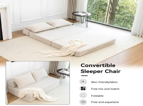 Versatile & Multi-Functional:The folding sofa effortlessly transforms into four practical forms—a single sofa, chaise longue, lounger, or full-size mattress—adapting seamlessly to your family’s ever-changing needs. Whether you're reading, working, binge-watching your favorite shows, or simply relaxing, this sofa delivers exceptional comfort in any position.